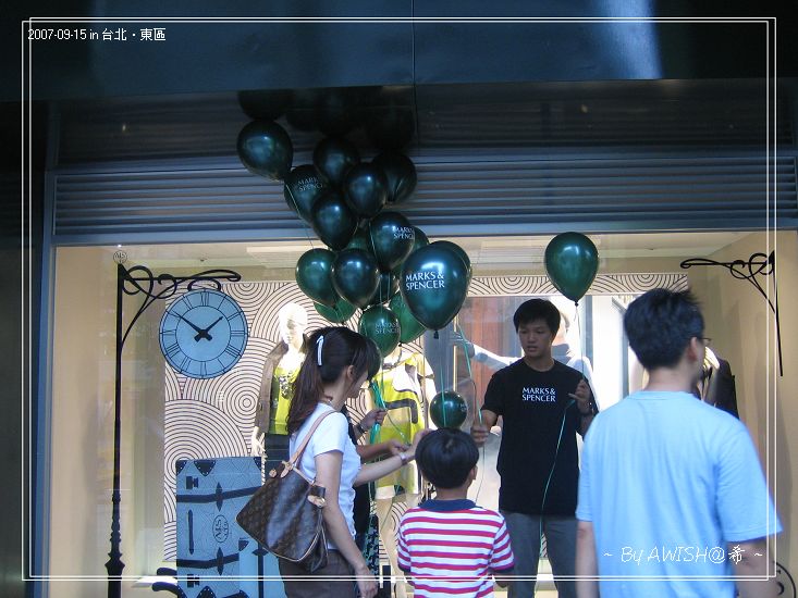 店前的騎樓,三不五時就有穿著M&S休閒T恤的男生,發放深綠色的氣球,